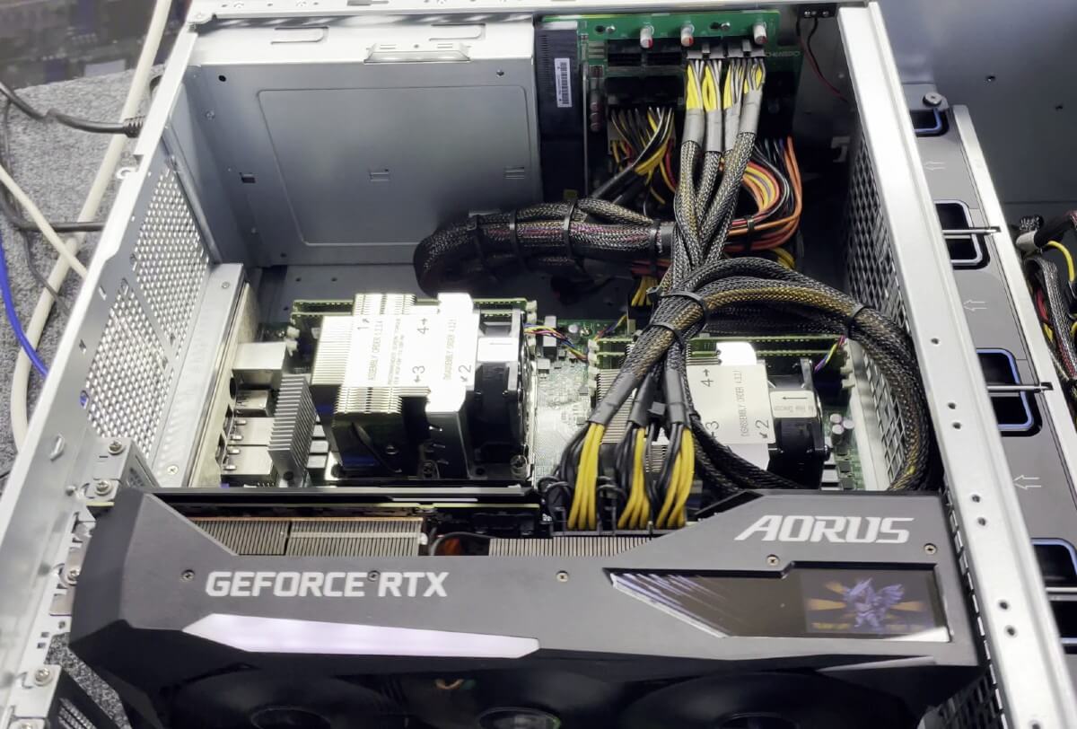 Клиентский сервер ушёл без GPU. Но на складе у нас ещё один такой же корпус и Gigabyte AORUS RTX 3070 Ti - почему бы не проверить, как они уживутся вместе?