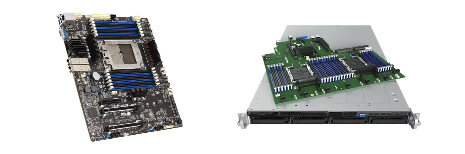 Материнская плата, по сути, соединяет все составляющие сервера. В 90% случаев материнка выбирается исходя из процессора. Стоит учитывать габаритность и комплектацию процессора, серверные диски и их количество, объем оперативной памяти.