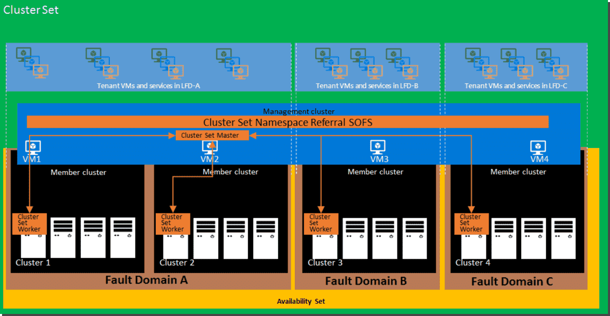 Для Hyper-V используется Scale-Out File Server. Виртуальные машины размещаются на общих папках SOFS, и все хосты Hyper-V обращаются к ним одновременно. Миграция ВМ между хостами работает без остановки, потому что диски остаются на месте.