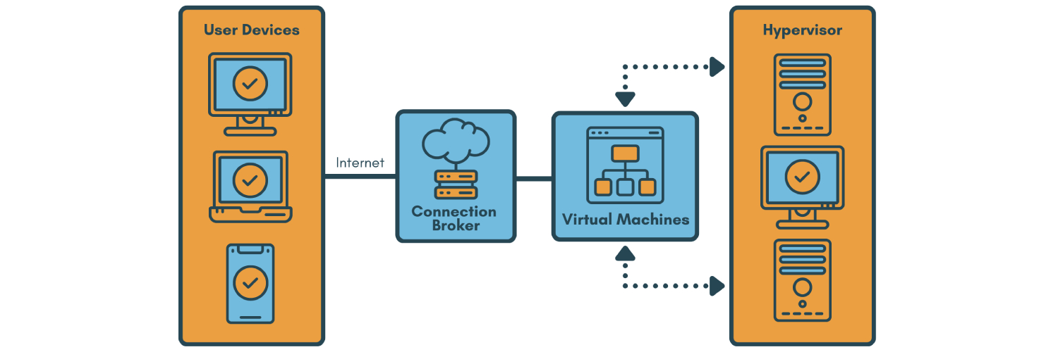 Экономия на железе. Для подключения к VDI-серверу подойдет даже старенький ноутбук или тонкий клиент. Все вычисления идут на сервере, пользователю нужен только экран и клавиатура.