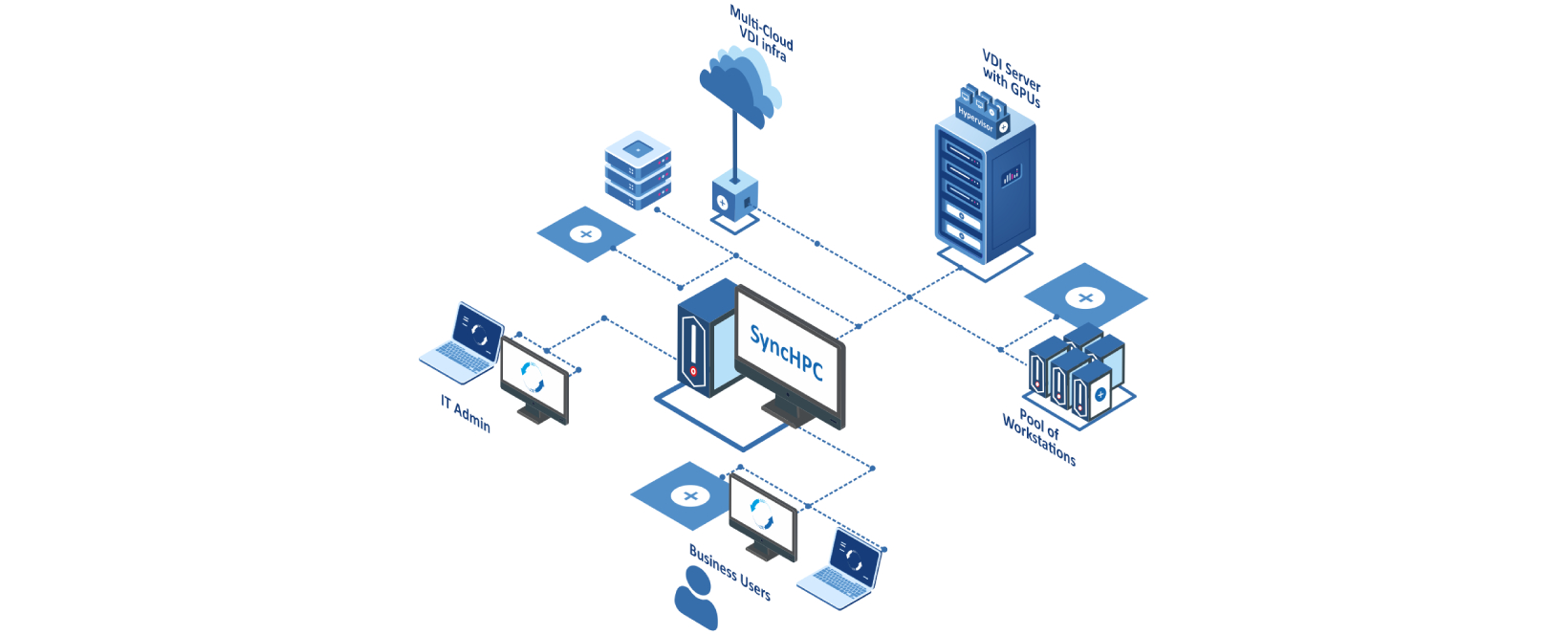 VDI (Virtual Desktop Infrastructure) — виртуализация рабочих мест — решает эту проблему иначе. Все операционные системы и приложения работают не на компьютерах сотрудников, а на виртуальных машинах в серверной. Пользователь подключается к своему рабочему столу через сеть — с любого устройства.