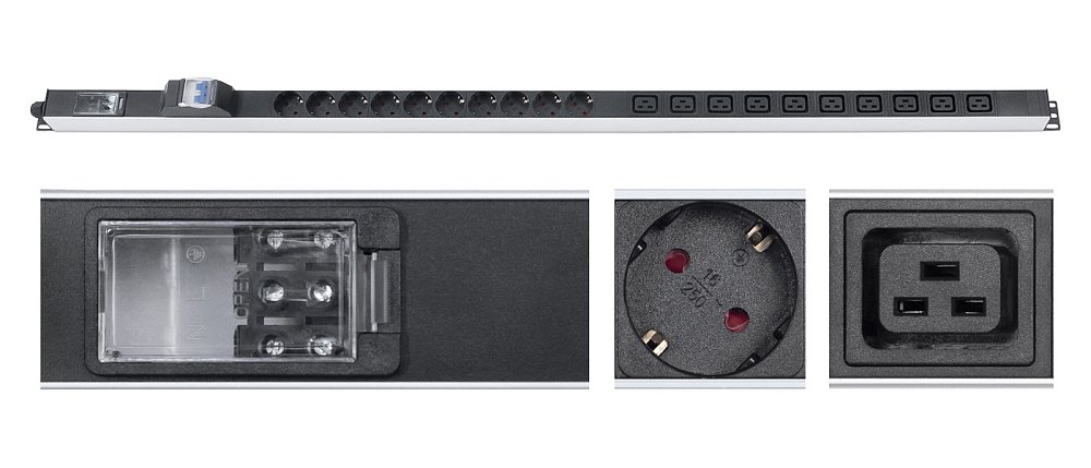 Выходная розетка (OUT) 10х Schuko, 10х IEC 60320 С19