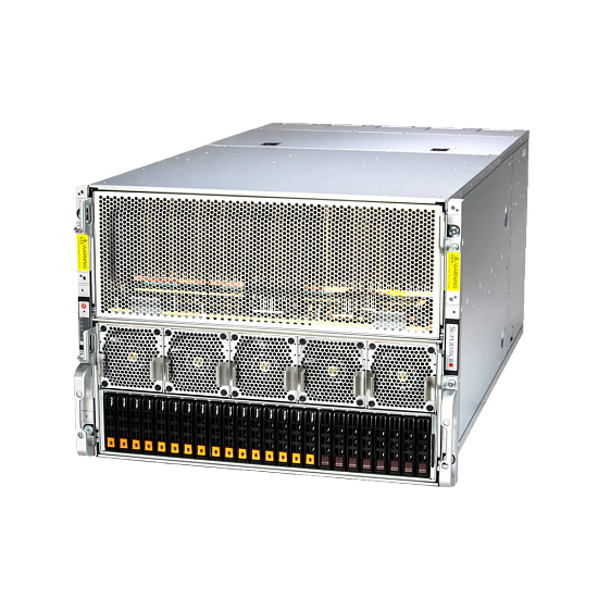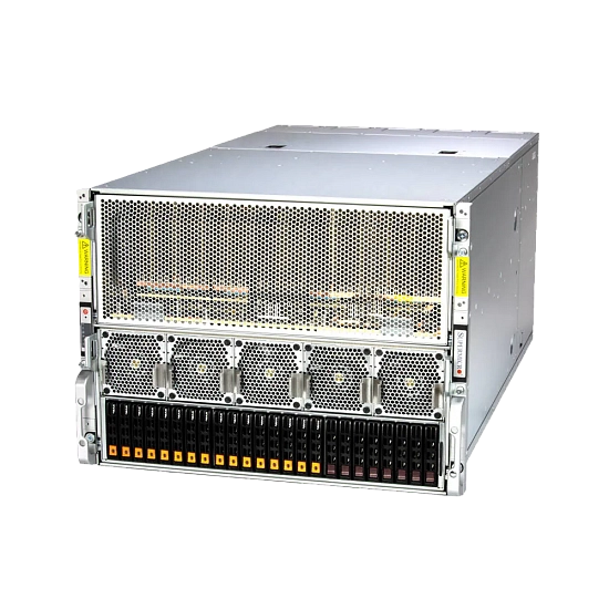 Главная фишка — поддержка до восьми GPU NVIDIA HGX H100/H200. Это делает сервер отличным решением для машинного обучения, рендеринга или научных расчётов. Память DDR5 до 6TB через 24 слота DIMM гарантирует, что данные будут обрабатываться без задержек.